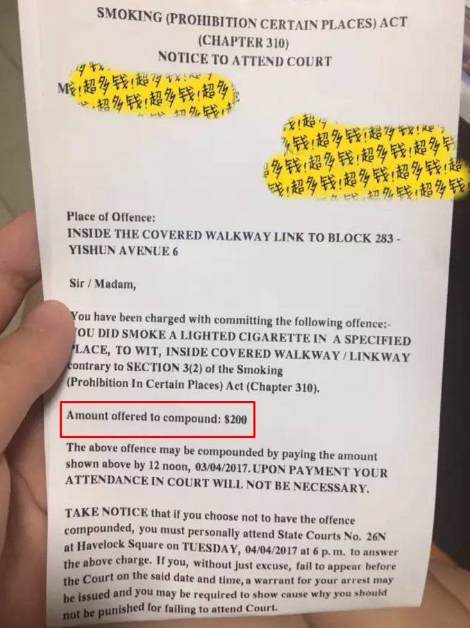 另有网友说:如果你在高楼向外丢香烟头,不幸被电眼拍到的话,不可会被罚钱,更有可能被控电子(CCTV)连续4天拍到在组屋区,往窗口外扔烟头。