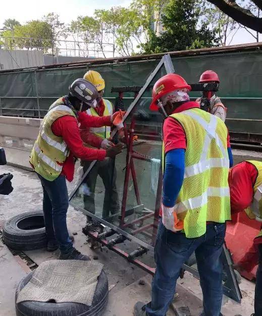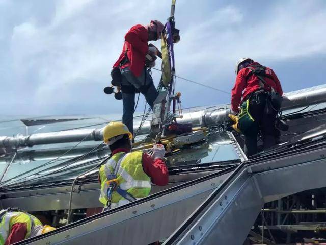 员工根据天气情况,每天会安装50-80块玻璃。而最后一块玻璃,将在下个月装上,星耀樟宜建筑外观也将在今年6月全部完工!