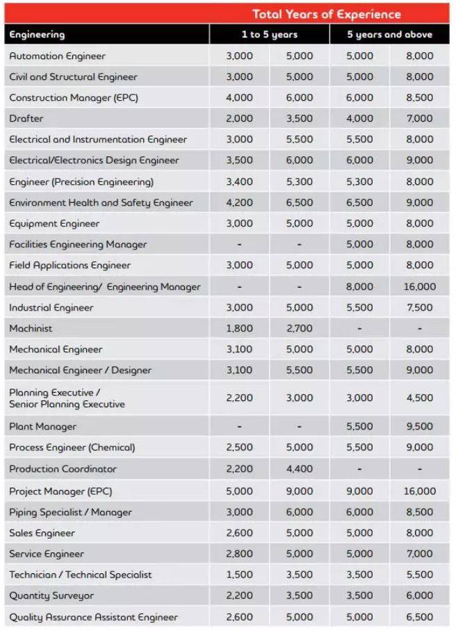 新加坡工程行业的薪水