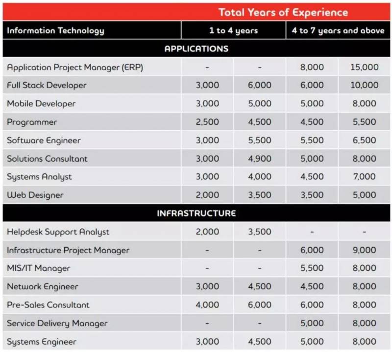 新加坡IT行业薪水如下