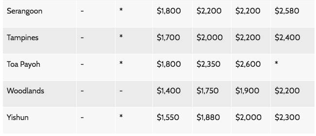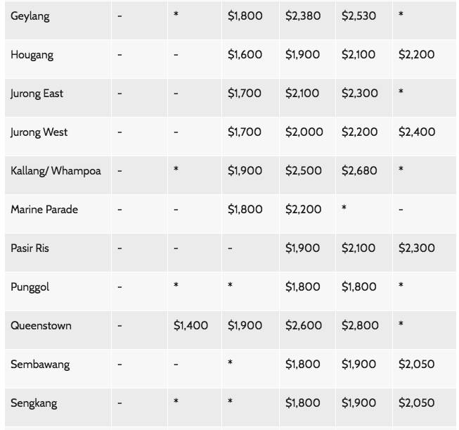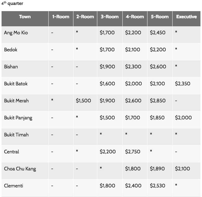 3. Indicates that the median rent is not shown because there are less than 20 subletting transactions in the quarter for that particular town and flat type