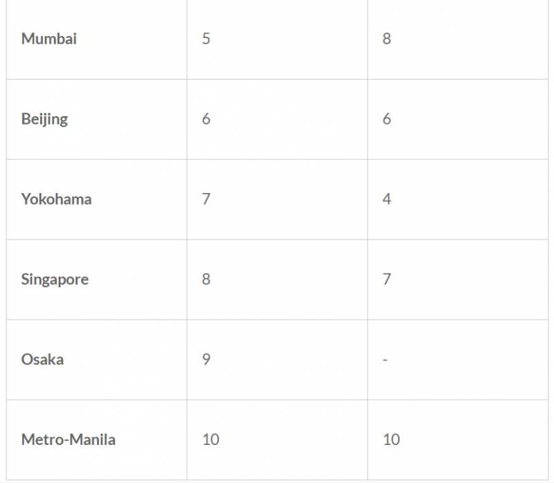 排在新加坡之前的,还有东京、上海、首尔、孟买、北京和横滨。
