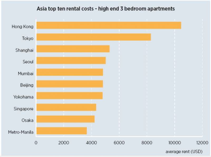 根据环球人力资源信息及顾问机构(ECA International)全球城市生活排行榜,香港的租房费用还是排名高居亚洲榜首。