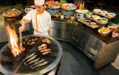 据说这是一个非常好的国际自助餐(印度,欧洲,海鲜等),这里露天的餐厅去提供真正的烧烤。在那里,你可以点烧烤牛排、鸡肉等等而且都是现场烹饪!