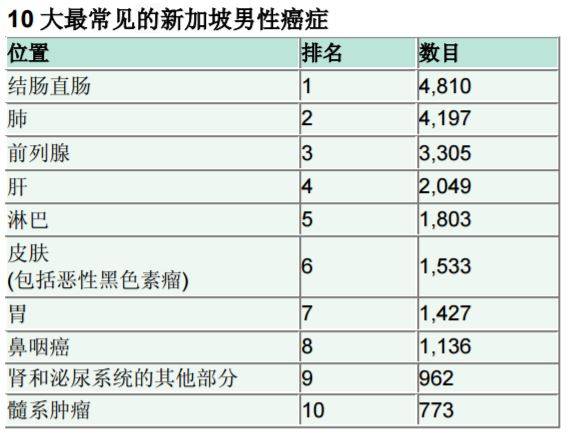 在新加坡生活压力大,常常饮食不正常,常常有一餐没有一餐的。所以现在有个报告指出结肠直肠癌(又称大肠癌)是新加坡最常见的癌症,它在新加坡男性癌症病例中排行第一,在女性癌症病例中排名第二。