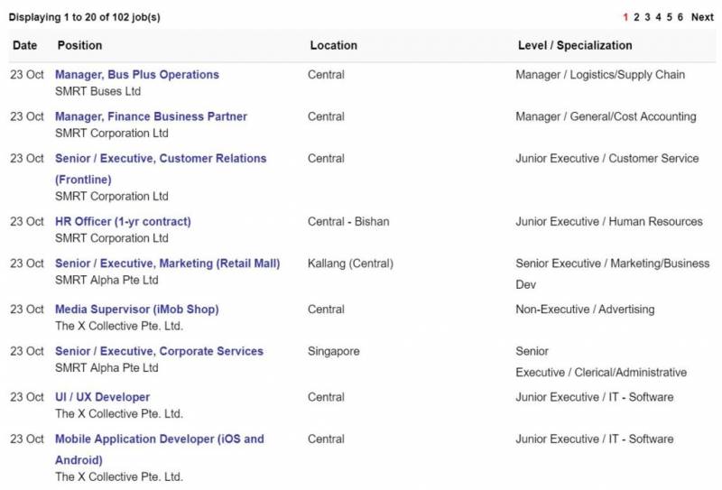 招聘连结:http://www.smrt.com.sg/Join-Us/Job-Listings