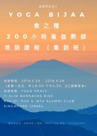 YOGA BIJAA (愈之种)于2012年成立于新加坡,其200小时瑜伽教师培训课程(RYT200)是美国瑜伽联盟(Yoga Alliance)认证课程,被全球瑜伽界广泛认可。这个课程是针对希望成为瑜伽老师的学员和希望在短期内密集提升自己对瑜伽的认识的朋友们设计的,通过密集的培训,学员毕业后可以成为独当一面的瑜伽老师,教授瑜伽小组课,企业课,私教课等。