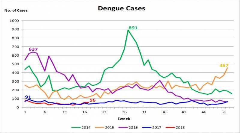 2014到2018年,骨痛热病例数: