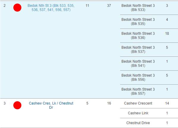 (国家环境局公布各个组屋报告的病患人数)