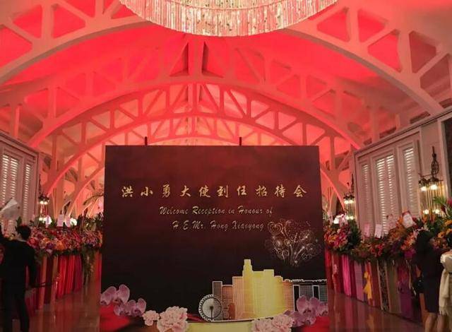 4月25日,在风景优美的新加坡富丽敦海湾酒店举行了隆重的招待会,大使馆官员领事,以及中国和新加坡政商界人士、科教、文化、学者、媒体代表等各界人士齐聚一堂,为中国驻新加坡新任大使洪小勇接风。