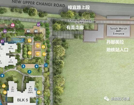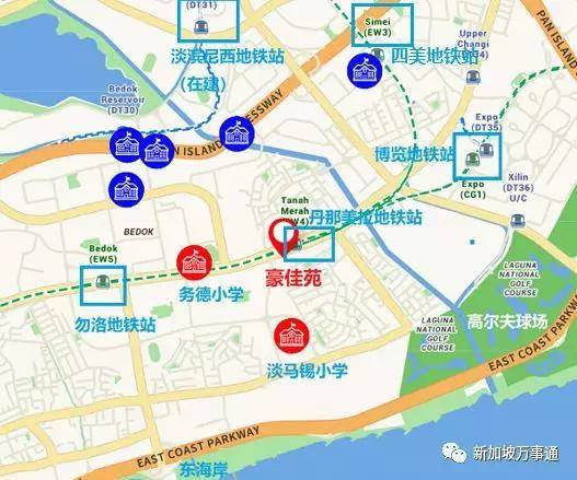豪佳苑的具体位置,位于丹那美拉(Tanah Merah)地铁站斜对面。