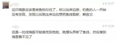 而钓到海豚的那名钓鱼者原本是想要让海豚自己挣脱鱼线游走,但由于海豚看上去实在是太虚弱了,逼不得已之下,大家还是建议钓鱼者将鱼线减断。后来海豚终于成功脱身,带着伤慢慢地游走了。