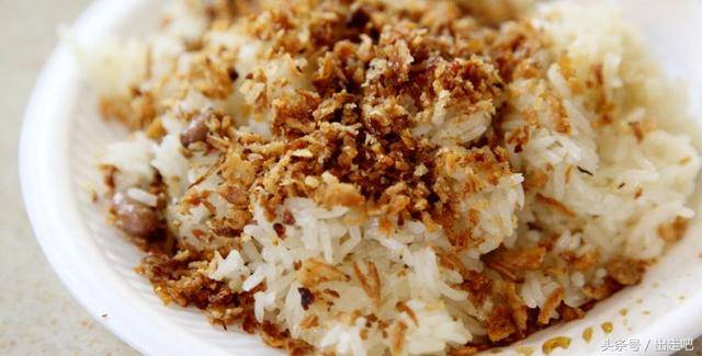 这可能是新加坡最出名的糯米饭了,只要卖完就关门。每天很多人早上的动力就是能在那里买上一份糯米饭⋯⋯这里的糯米饭有甜咸两种,可以叫摊主把甜咸的掺在一起,味道互相衬托,再配上花生和炸酥的蒜头,让人叫好不绝。