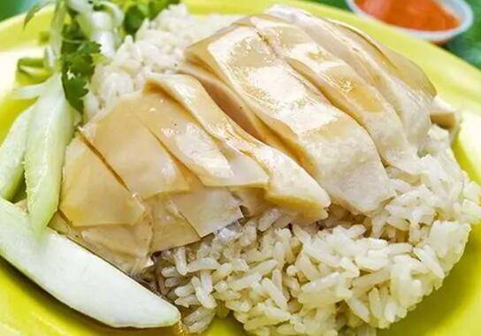 海南鸡饭之所以闻名,不在于白切鸡,而在于鸡油米饭。鸡油米饭做法其实很简单,就是拿香浓的鸡汤直接煮米饭就好了,煮好之后用饭勺将米饭翻动至蓬松,简简单单的食物却百吃不腻。