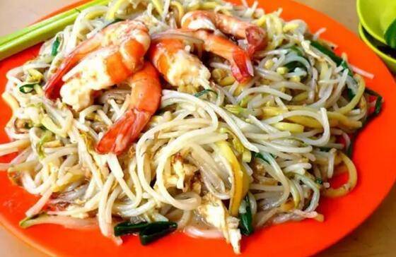 炒福建虾面一直是很多小贩中心的经典保留项目,虾味十足的汤汁搭配着面条来吃,相当清爽!