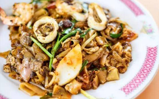他们家的炒粿类似于槟城式炒粿条,出品的粿条有焦焦脆脆的口感,常规$ 3一份,带虾,蛤,还有中国味香肠,额外加鱿鱼和虾多付$ 1就可以。