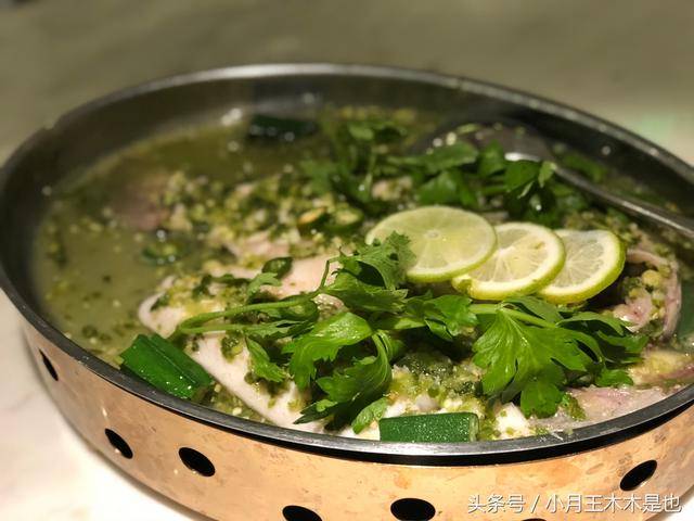青柠檬酸汤鲈鱼,微辣,酸少许,肉质算得上嫩。