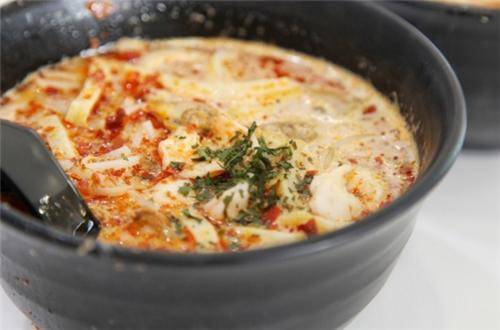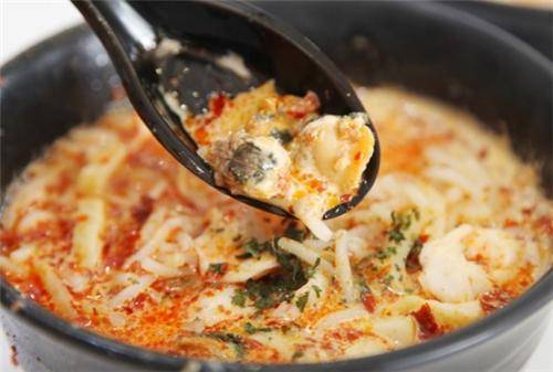 以丰富奶香的椰浆汤汁为原料,配合上粗米线加上椰浆的鲜味、鲜虾的甜味和自制辣椒油的辛辣味,口味丰富多变。