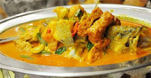 咖喱鱼头的做法是将红鲷鱼的鱼头与蔬菜放在辣味的咖喱中一起炖煮,再用酸酸的罗望子调味,最终造就了这道回味无穷的招牌菜。