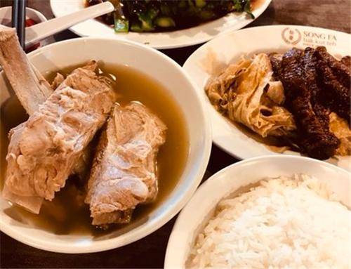 肉骨茶是用排骨和独特的药材与香料加水文火煨制而成,通常会使用丁香、肉桂、八角、茴香以及芫荽(yán sui)等,反映了新加坡多元文化的影响。在殖民地时代,苦力生活贫困,粗衣糙食,营养不良,偶尔以肉骨茶补充滋养。如今,肉骨茶已是备受本地人及游客青睐的美食。排骨软烂,汤汁清香回味微甜,对于老人小孩都是不错的选择。