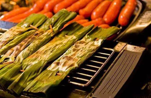 沙爹是将腌好的牛肉、羊肉、鸡肉串成串以适度的火候炭烤后,再蘸一层厚厚的沙爹酱一起入口。