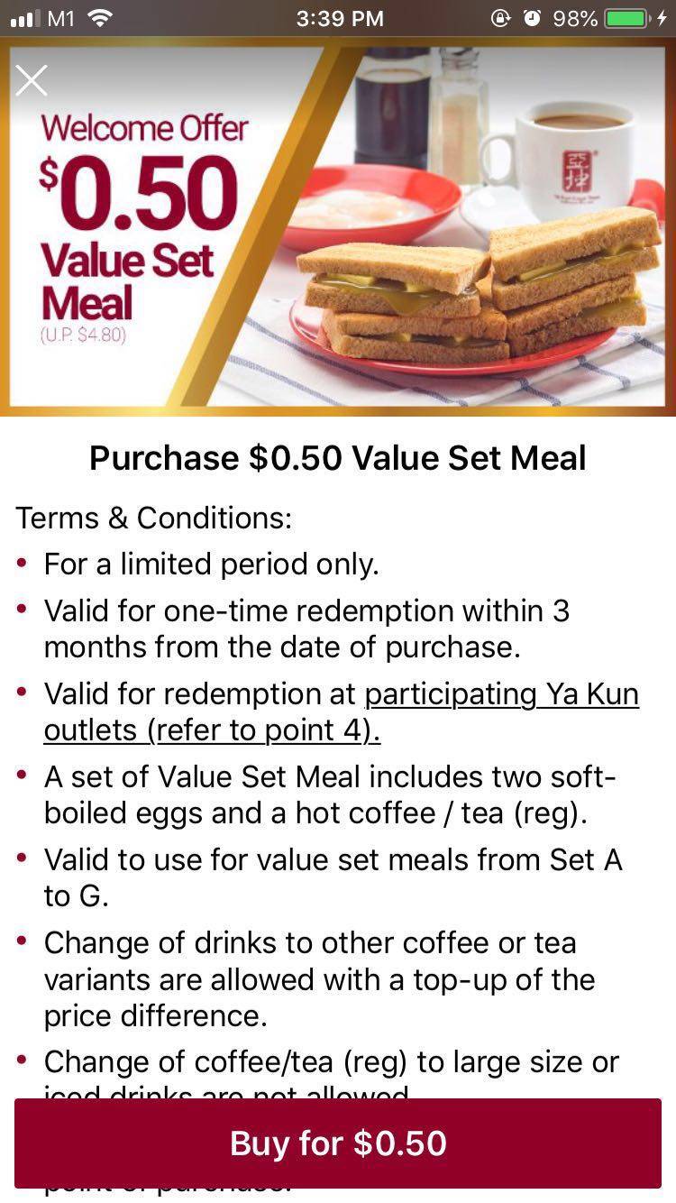 Ya Kun推出了套餐A-G全部5毛钱的活动(原价4.8新币)!