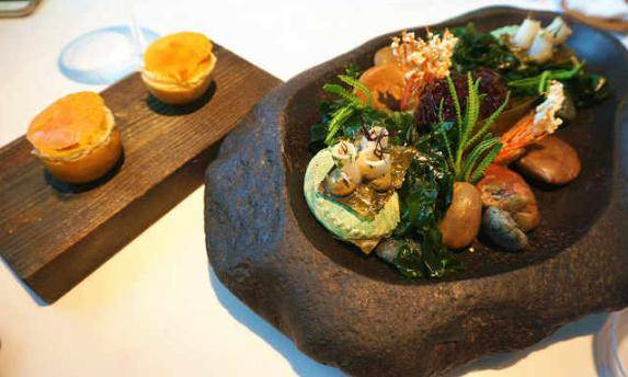 这是一家很有趣的餐厅,因为它没有菜单,在上每一道菜之前,厨师是绝对不会告诉你接下来是什么菜的,但是他会关心你有没有什么忌口,然后再根据那一天店里的食材帮你做菜。