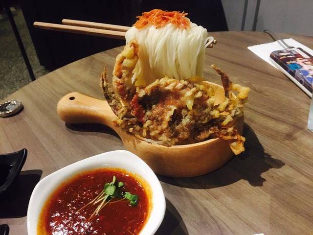 这是一家正宗的日式料理店,招牌是悬浮面条加咸蛋黄酱。至于面条是怎么站起来的,这个问题就留给你自己啦~