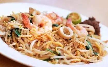 福建炒虾面是新加坡人最爱的小吃之一。先配料滚成汤底,用黄色粗面条、米粉炖焗,再加入海鲜,炒一炒,等到汤汁全干即可。