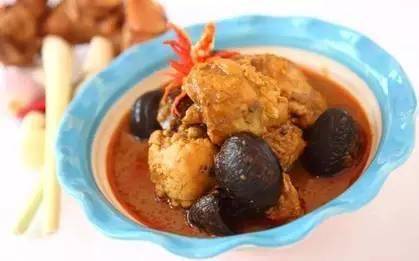 黑果焖鸡是新加坡娘惹菜中的经典之作。主要食材为鸡肉、黑果以及7种捣碎炒制的香料一起焖烩,直到汤汁收浓。