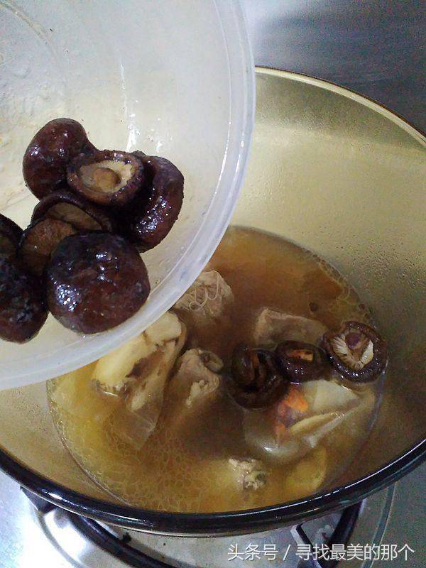 8.把炒过的香菇倒入汤锅中煮开后