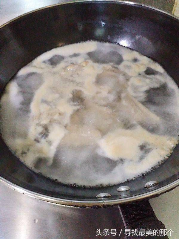 2.水开后下排骨焯水去除杂质