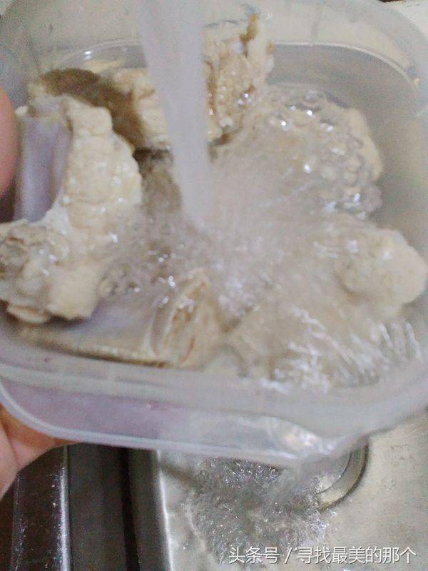 3.捞起排骨,冲洗干净