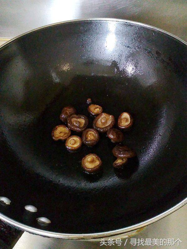 7.锅里下油,香菇下锅炒出香味
