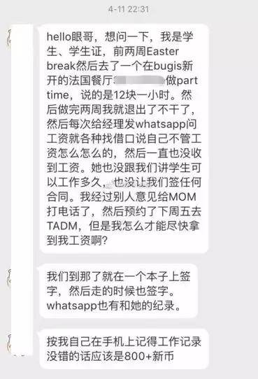 新加坡眼收到网友求助,反映做兼职工却没得到工钱的问题: