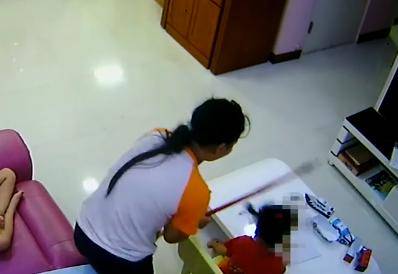女佣出手丝毫不手软,即便女童哭泣,她也照打不误。