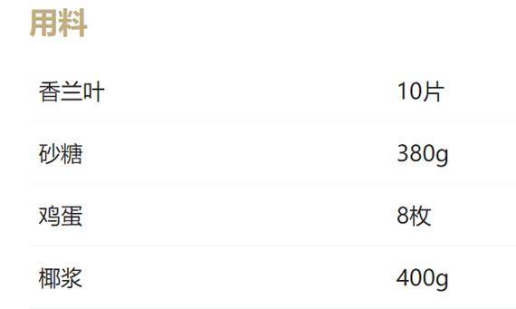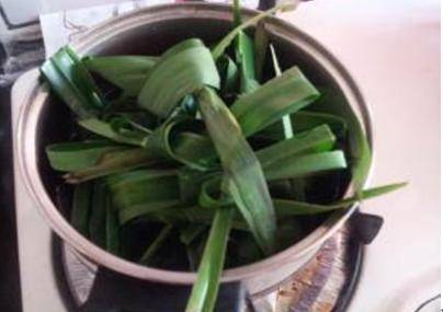 香兰叶洗净,打结,锅中放少量水,将香兰叶放入锅中,大火煮开后,转小火,时间最好半小时以后,熬出来的汁浓一点,取30g即可,放凉备用