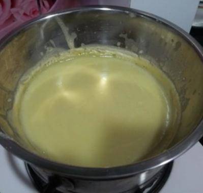 采用蒸煮法,另外准备一口大锅,放水并在锅底垫一块厚毛巾,水开后将上面过滤好的小锅放进去蒸煮,边煮边搅拌