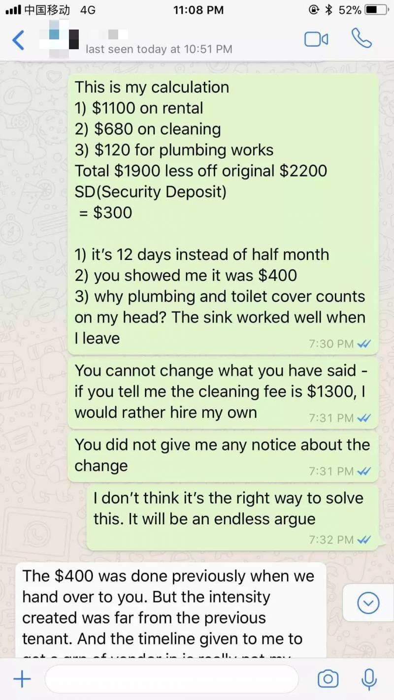 最后房东给出的扣款理由是