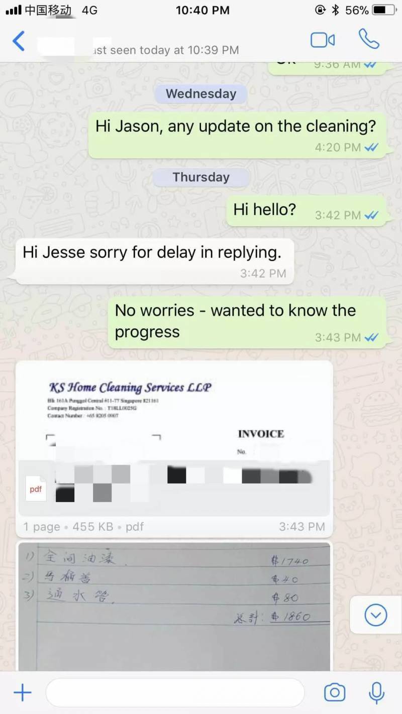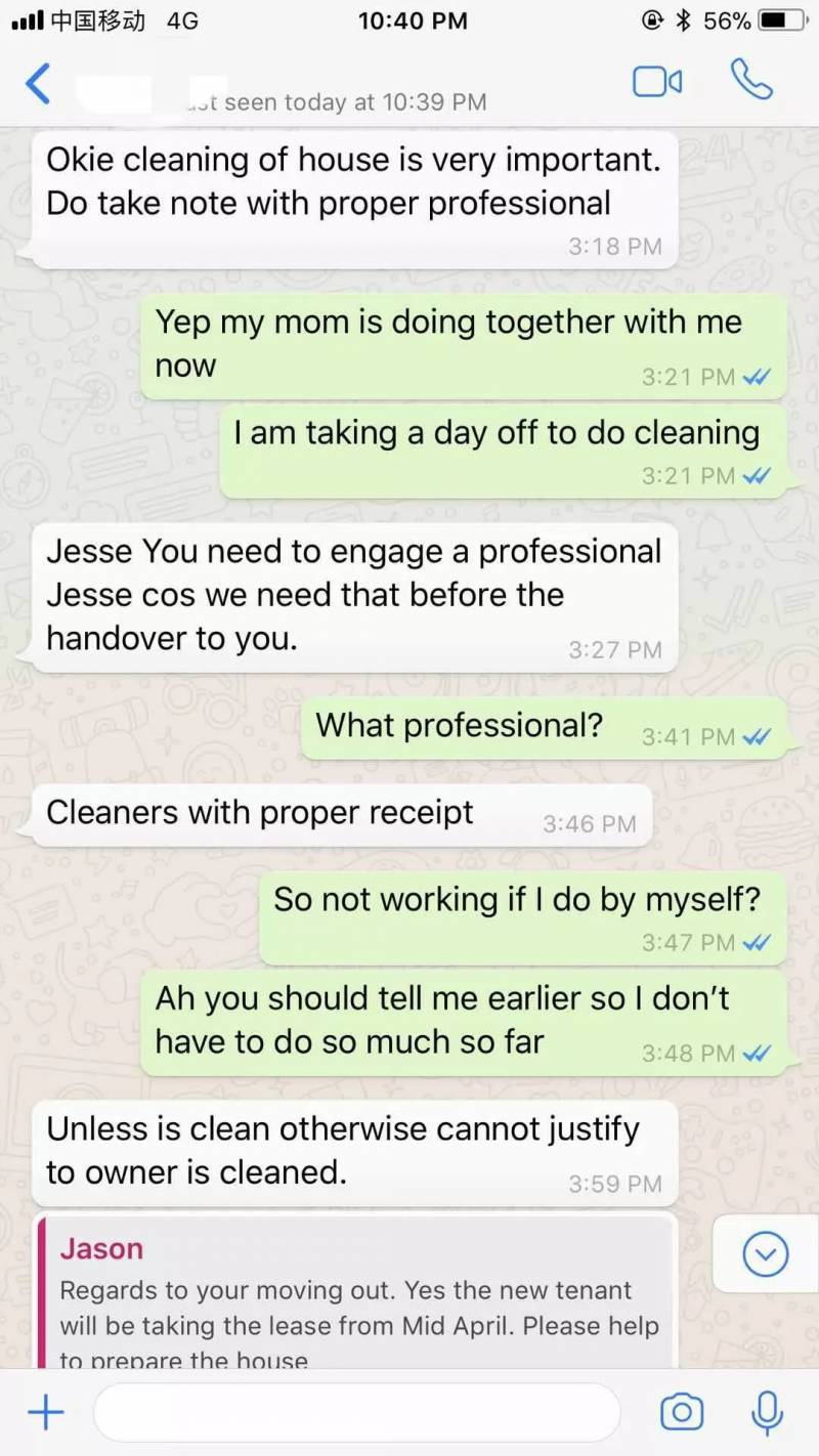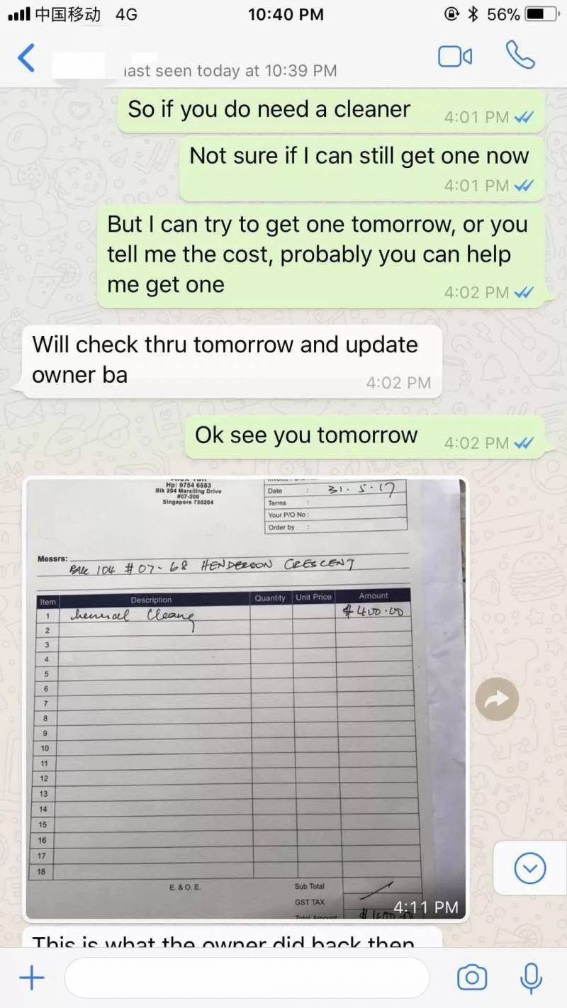中介发了张收据表示房东自己找了专业人员来清理)