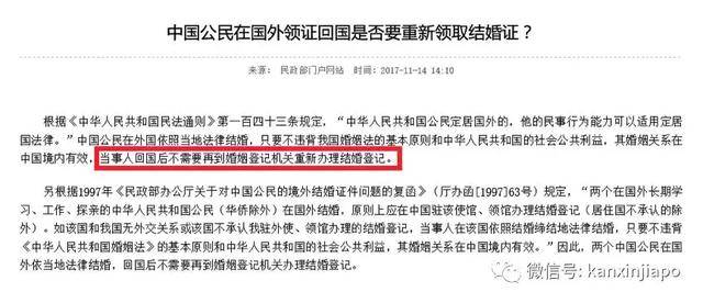 而这位网友遇到的情况是,已经在新加坡注册结婚,回国是否要再进行一次注册。对此,国家民政部的回答是:不需要再在中国领证啦!