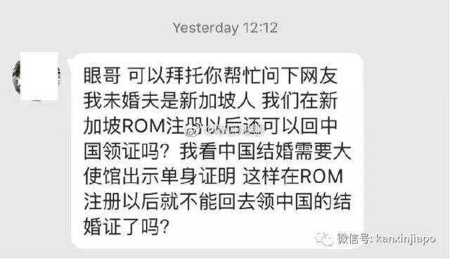 新加坡眼收到网友求助,咨询中国人和新加坡人注册结婚的问题。