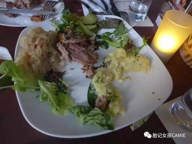 吃完了香肠继续消灭猪腿的任务,因为我不习惯浪费也不想放弃,于是我开始吃第三块猪腿肉,此时小伙伴已经放弃了。德国人才是真正大口吃肉、大口喝酒的代言人啊,两小块猪腿肉就让我撑到生无可恋,和小伙伴聊天的时候还说错话,而且到最后居然还没吃完(此处都是泪啊)