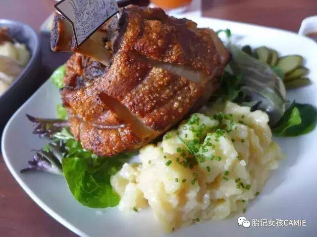 抱着“我就不信吃不动你”的心态,我又挑战了第2块猪腿肉,发现自己越咬越慢,越咬越累,居然开始有了放弃的想法。我可是一顿早餐吃四个面包的人,怎么可以败在一块德国猪腿上。然而烤过的八戒的皮硬到朋友尝试用餐刀切开,居然切不下去。