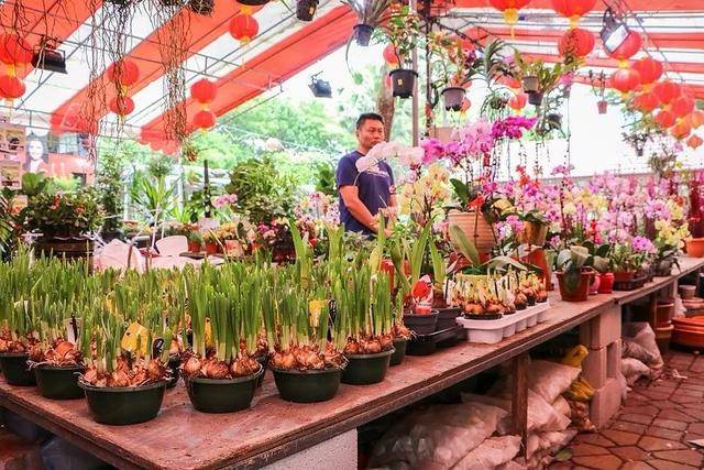 具体位置不确定,每段时间都会在全岛不同地方搭棚。不过在新年期间,武吉士四马路,还有牛车水那一带都可以买到像节节高,橘子树,金钱树,鸡冠花这些应节植物。