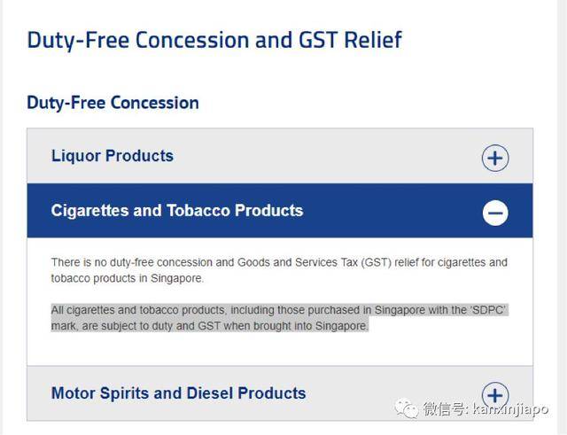 所有香烟和烟草制品,包括在新加坡以“SDPC”商标购买的香烟和烟草制品,在进入新加坡时都需要缴税。
