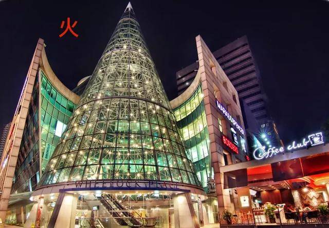 尖角状的伟乐坊,看起来像火焰,所以代表火。