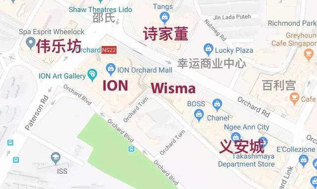 而且,按照五行相生的原则:火生土、土生金、金生水,伟乐坊、ION、Wisma Atria、义安城一字排开,唯一缺的“木”在ION的对面,被属金的ION克住了,所以走在乌节路上,你可能会感觉到ION这一侧的商铺更旺,人流更多。