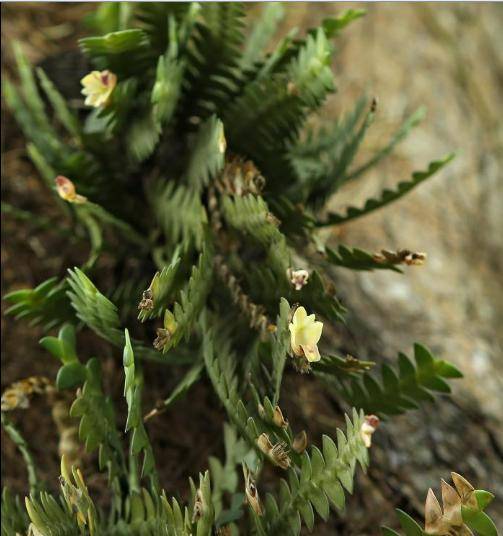 因花朵盛开时犹如张嘴吼叫的狮子而得名。这个胡姬花的特点在于它的叶子特别肥厚,能较有效地储存水供兰花在相对干燥的环境中生长。黄色花朵甚小,直径仅1.5公分,散发淡淡香草香。它原已在本地绝迹,但公园局在五六年前起将它引入植物园、东海岸和总统府等处。