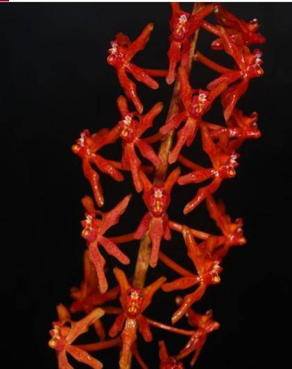 大红花瓣如火焰般引人注目,火焰兰的原生品种在本地属极危品种,研究员至今仅在北部一带找到一株原生火焰兰的踪迹。由于火红的胡姬花较少见,因此不少研究员会用这个品种与其他胡姬花配种,种植出更多样的胡姬花。西海岸、榜鹅公园和雅凯路(Arcadia Road)等地都可看到它的踪迹。